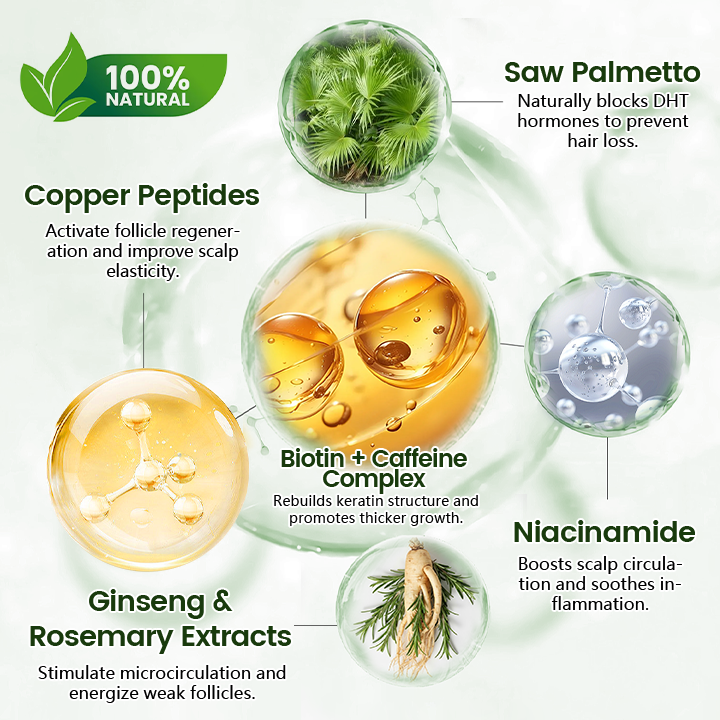 Copper Peptides ā Activate follicle regeneration and improve scalp elasticity.